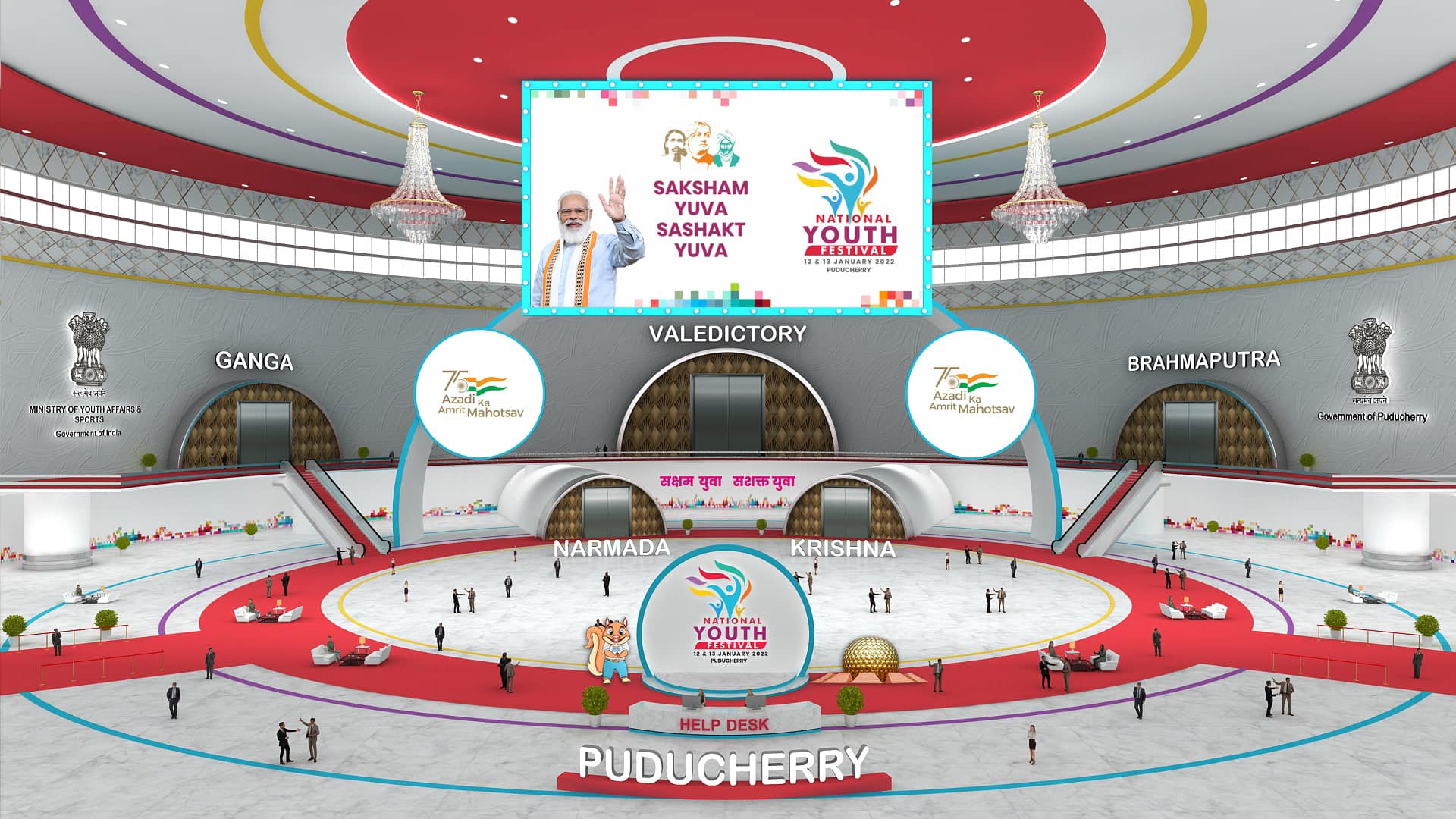 The onground event at Puducherry with 8000 + youths mutiple conference hangers, F&B Zones, experience & entertainment areas was underway to be executed just in time at the main stadium campus of Puducherry University.